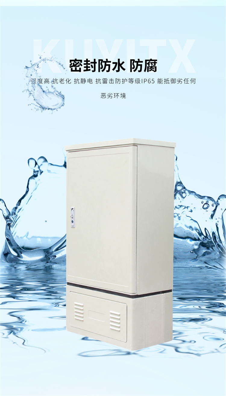 光缆交接箱是一种为主干层光缆、配线层光缆提供光缆成端、跳接的交接设备。光缆引入光缆交接箱后,经固定、端接、配纤以后,使用跳纤将主干层光缆和配线层光缆连通。箱体采用高强度的国际航空材料SMC(玻璃纤维增强不饱和聚酯塑料)经高温模压而成,使用寿命长,防老化、抗辐射;表面不需任何防护,具备全天候防护功能