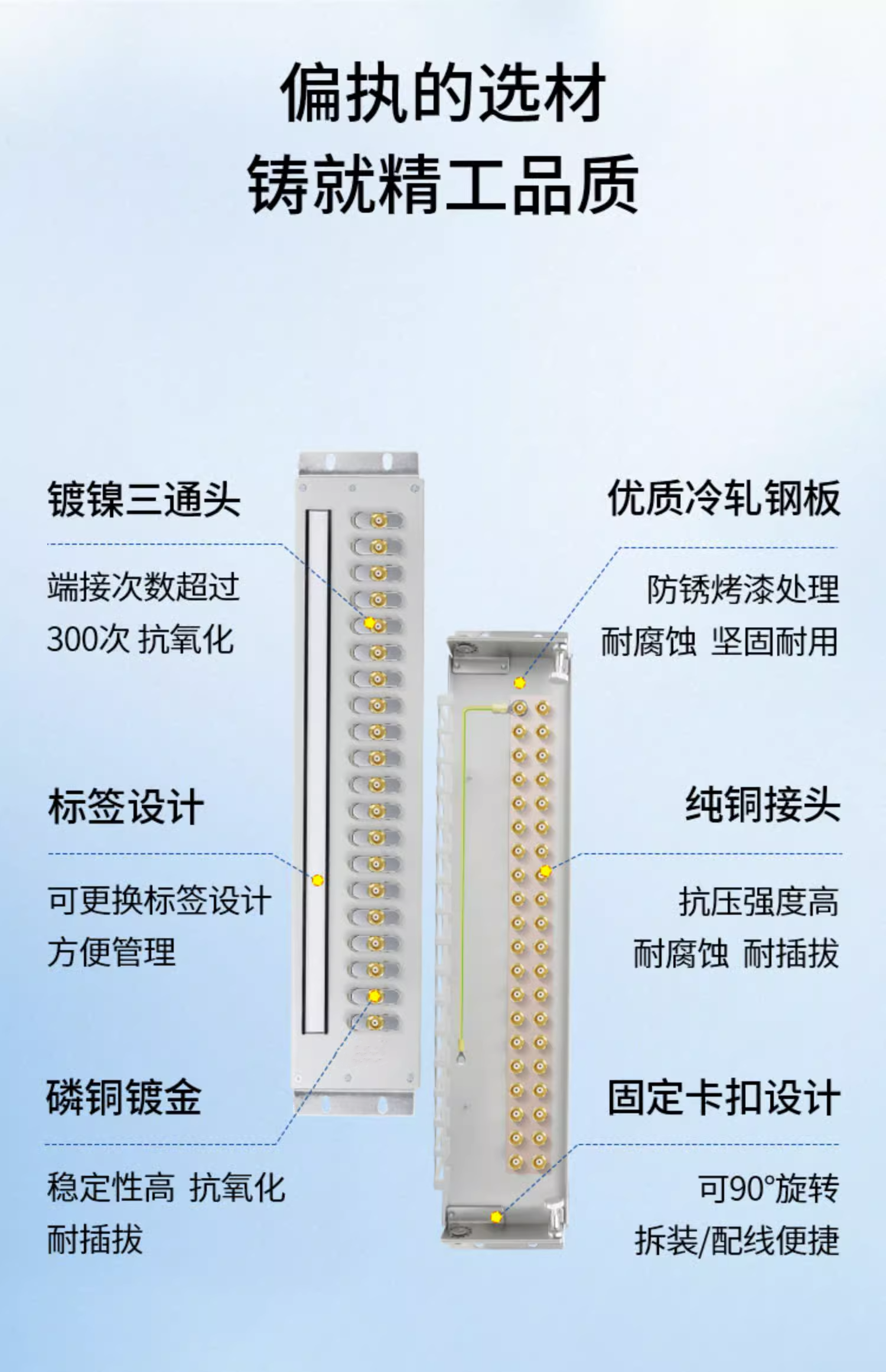 数字配线架的布线要求整齐划一,同轴电缆与接线座的连接牢固可靠。电缆的两端都有明显的标识以便在故障查找时能迅速准确。