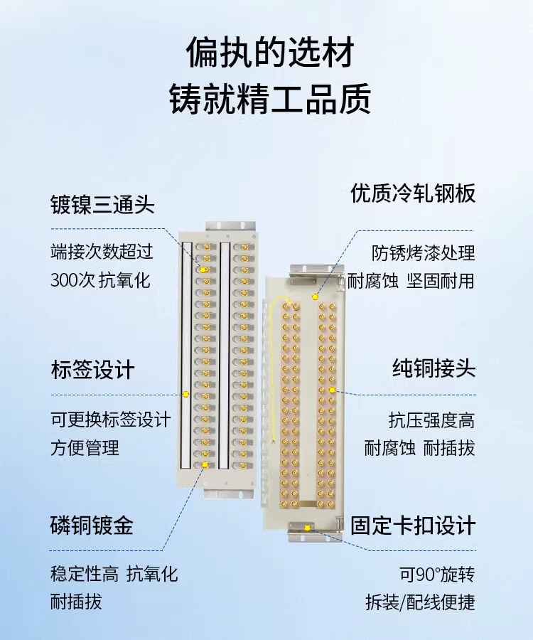 数字配线架的布线要求整齐划一,同轴电缆与接线座的连接牢固可靠。电缆的两端都有明显的标识以便在故障查找时能迅速准确。
