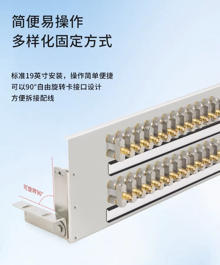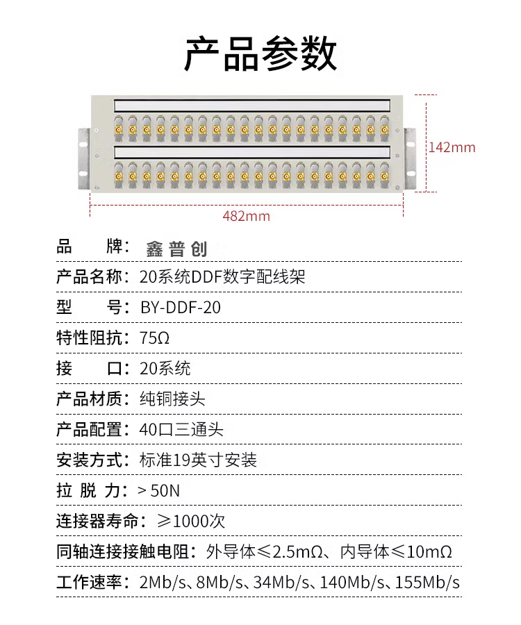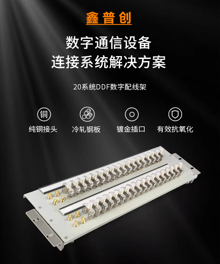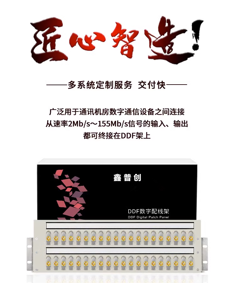 DDF数字配线架又称高频配线架,以系统为单位,有8系统,10系统,16系统,20系统等,在数字通信中越来越有优越性,它能使数字通信设备的数字码流的连接成为一个整体,从速率2 Mb/s~155 Mb/s信号的输入、输出都可终接在DDF架上,这为配线、调线、转接、扩容都带来很大的灵活性和方便性。