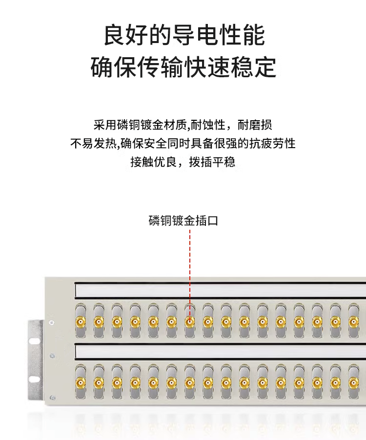 数字配线架的排列一般采用列式排列,即以列为单位。来自微波、光纤及其他设备的ITU—T G.703信号(2Mbits/s)信号通过75Ω的同轴电缆接到数字配线架上,电缆与接线座固定连接,以保证接续衰耗最小。在成对的接线座上,左面的接线座为发送接线座,右面的接线座为接收接线座。在电路设计时,通常将同种设备送来的信号集中在一起,设备复用器的发送信号全部接入左面一列接线端子,设备复用器的接收信号全部接入右面一列,由于复接设备采用背靠背形式,因此相邻两个接线座的收发为两套背靠背设备的收发。