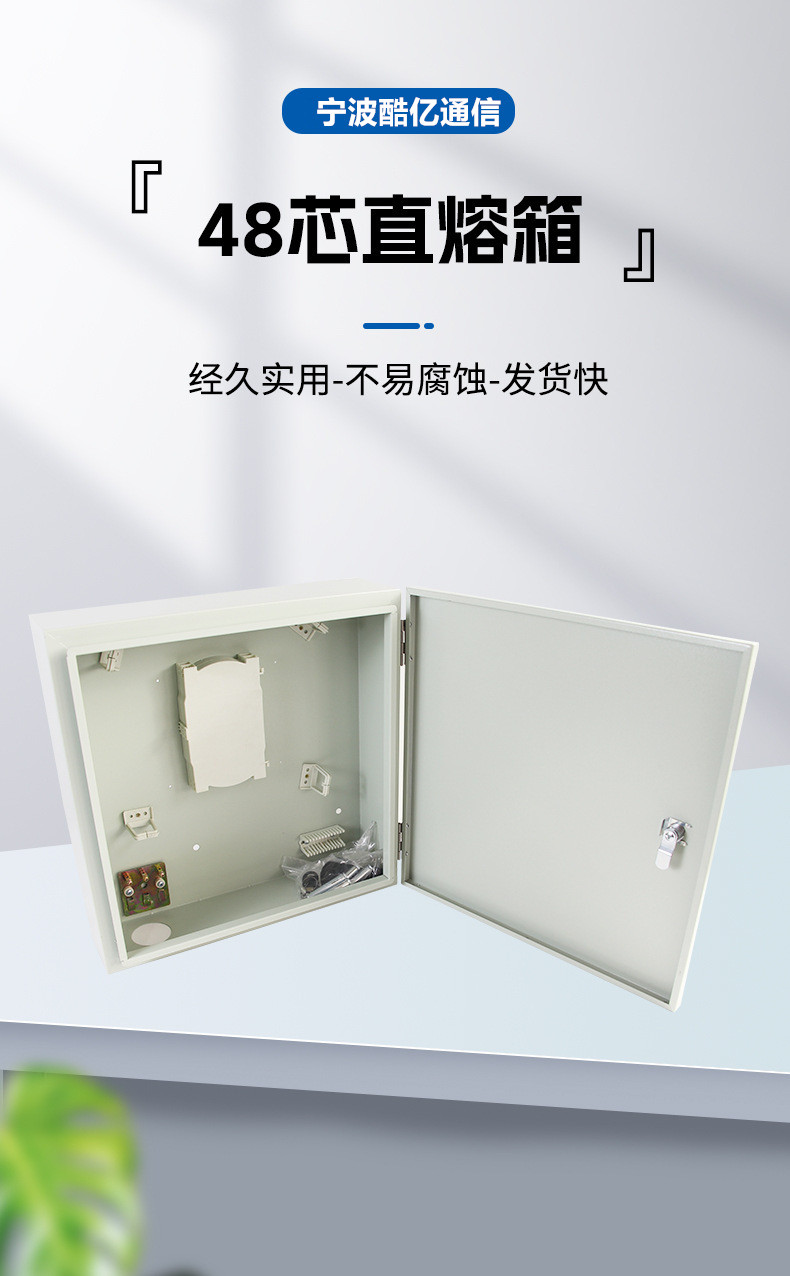 00001. 定义与作用:光纤直熔箱,也称为光纤分纤箱或光纤配线箱,是光纤接入网中的关键节点设备,主要用于光缆的引入、固定、光纤熔接、接头保护、光纤存储及分配。它上行连接配线光缆,下行连接入户光缆,实现光信号的分配和连接。
