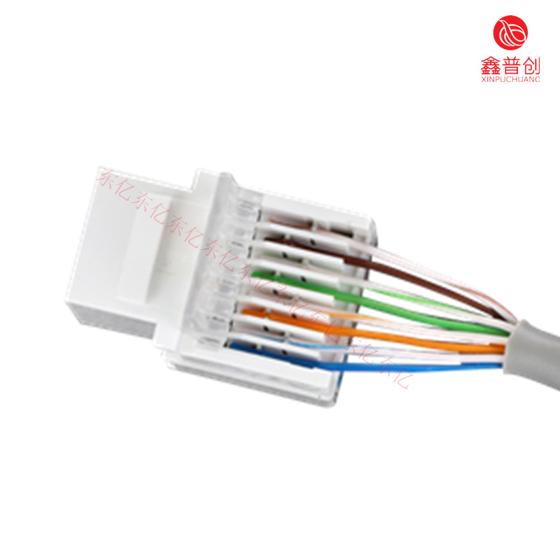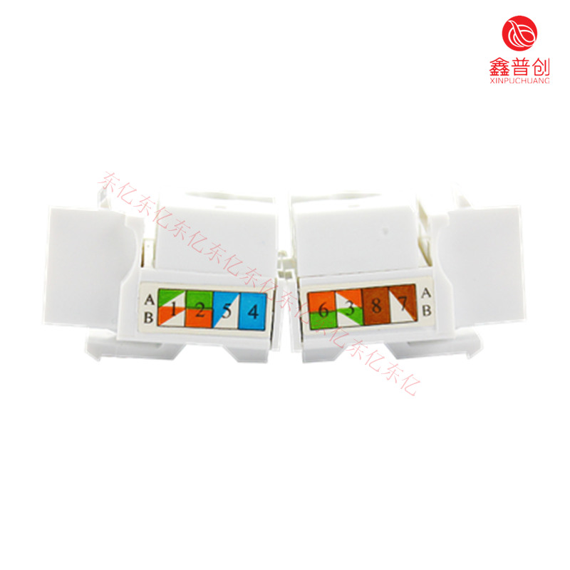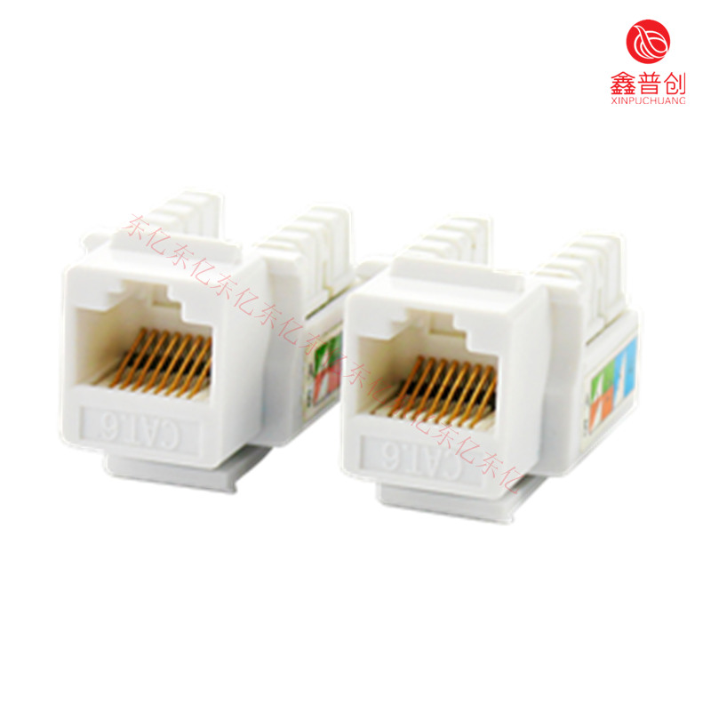 RJ45模块的核心是模块化插孔。镀金的导线或插座孔可维持与模块化的插座弹片间稳定而可靠的电器连接。由于弹片与插孔间的摩擦作用,电接触随着插头的插入而得到进一步加强。插孔主体设计采用整体锁定机制,这样当模块化插头插入时,插头和插孔的界面外可产生很大的拉拔强度。RJ45模块上的接线模块通过“U”形接线槽来连接双绞线,锁定弹片可以在面板等信息出口装置上固定RJ45模块