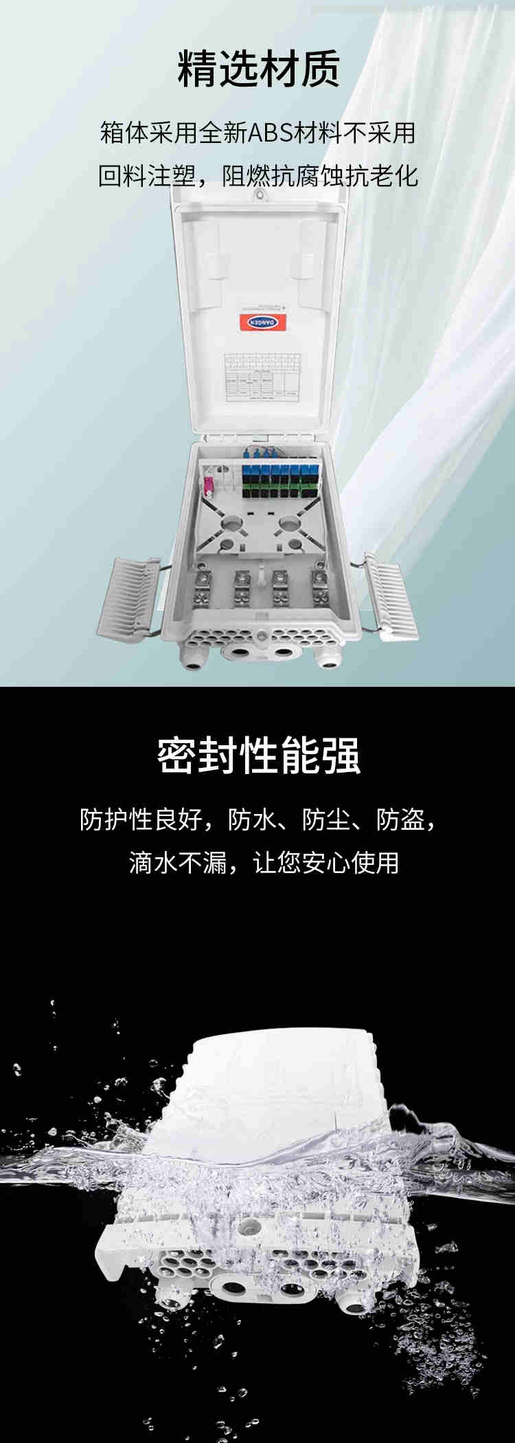 · 结构设计‌:常采用‌双层结构‌,外层用于光分插片固定及蝶形光缆盘绕,内层用于光纤熔接和存储,操作空间划分清晰。‌‌